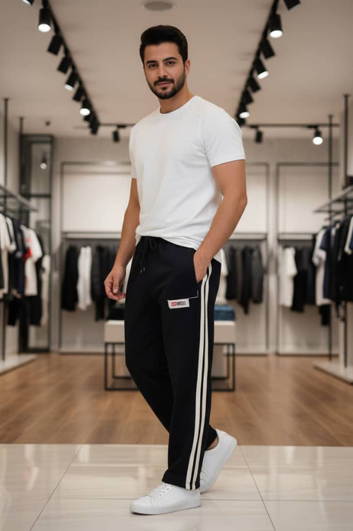 شلوار نیم بگ اسپرت بغل خط